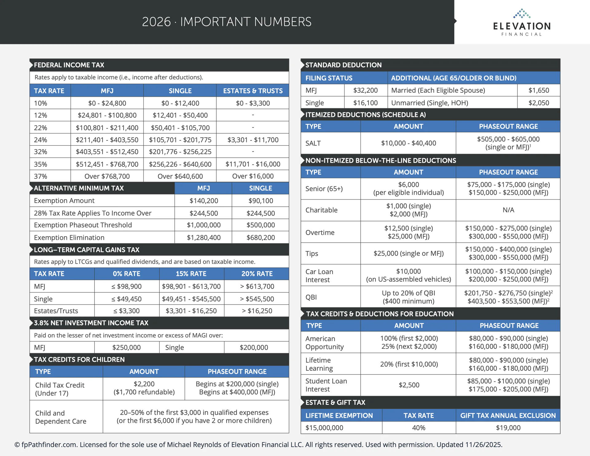 As you review your financial plan for 2026, consider how these updated numbers affect your strategy.