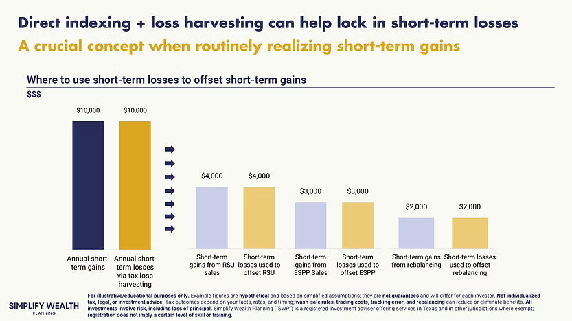 The potential strength of direct indexing plus tax loss harvesting for many tech professionals often lies more in addressing the recurring tax friction from ongoing RSU and ESPP activity.