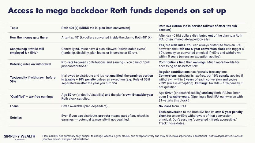 With a Roth 401(k) (Mega Backdoor), access is more restricted while you are employed. But it usually opens up if you leave the job.